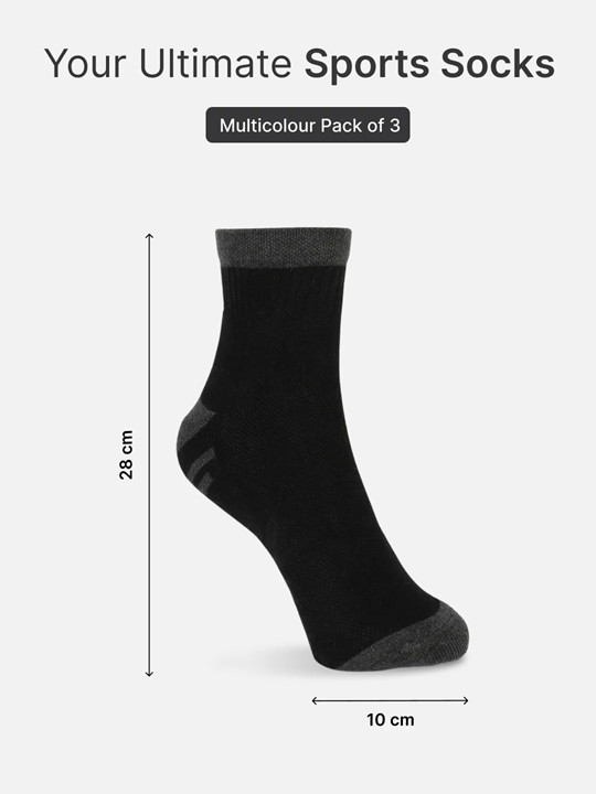 Men’s Colorblocked Sports Pack of 3 Ankle Socks in Cotton – Anthara, Black & Grey